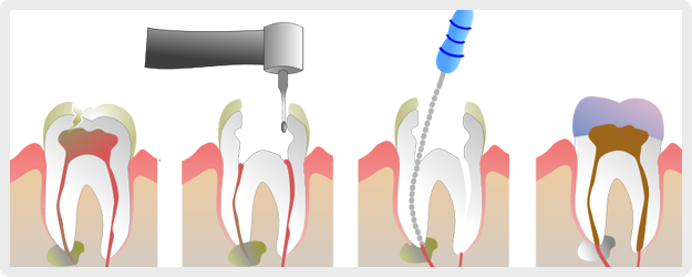 Kai pradedamas šaknies kanalų gydymas, jis dažniausia vyksta etapiškai, prireikia kelių vizitų. Danties nervas (pulpa) yra pašalinama, kanalas išvalomas ir užplombuojamas. Viso gydymo proceso metu yra atliekamos dentalinės nuotraukos. Kai danties gydymas vyksta per kelis vizitus ant danties uždedama laikina plomba, kuri apsaugo dantį nuo bakterijų patekimo į kariozinę ertmę. Svarbu paminėti, kad su šia plomba pacientas gali vaikščioti ne ilgiau nei 1 mėnesį laiko. Iškritus jai, nedelsiant būtina kreiptis į gydytojus – odontologus.