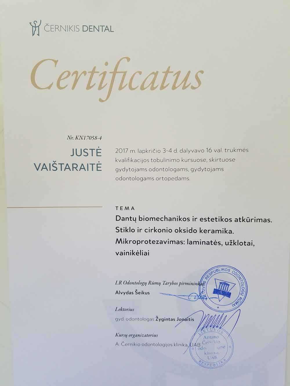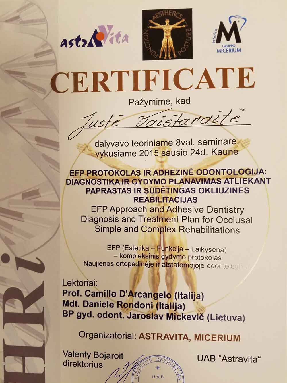 - 2015 01 24 „EFP protokolas ir adhezinė odontologija: diagnostika ir gydymo planavimas atliekant paprastas ir okliuzines reabilitacijas“ Kaunas, Lietuva