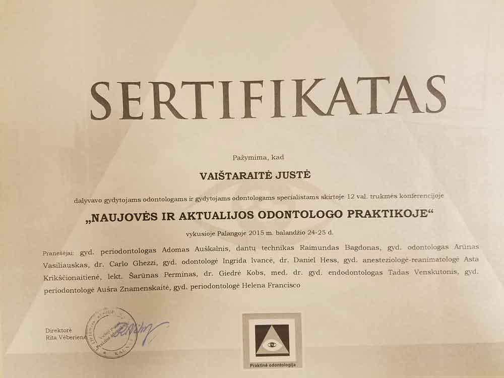 - 2015 09 25 – 26 „Odontologijos naujovės praktikoje“ Kaunas, Lietuva