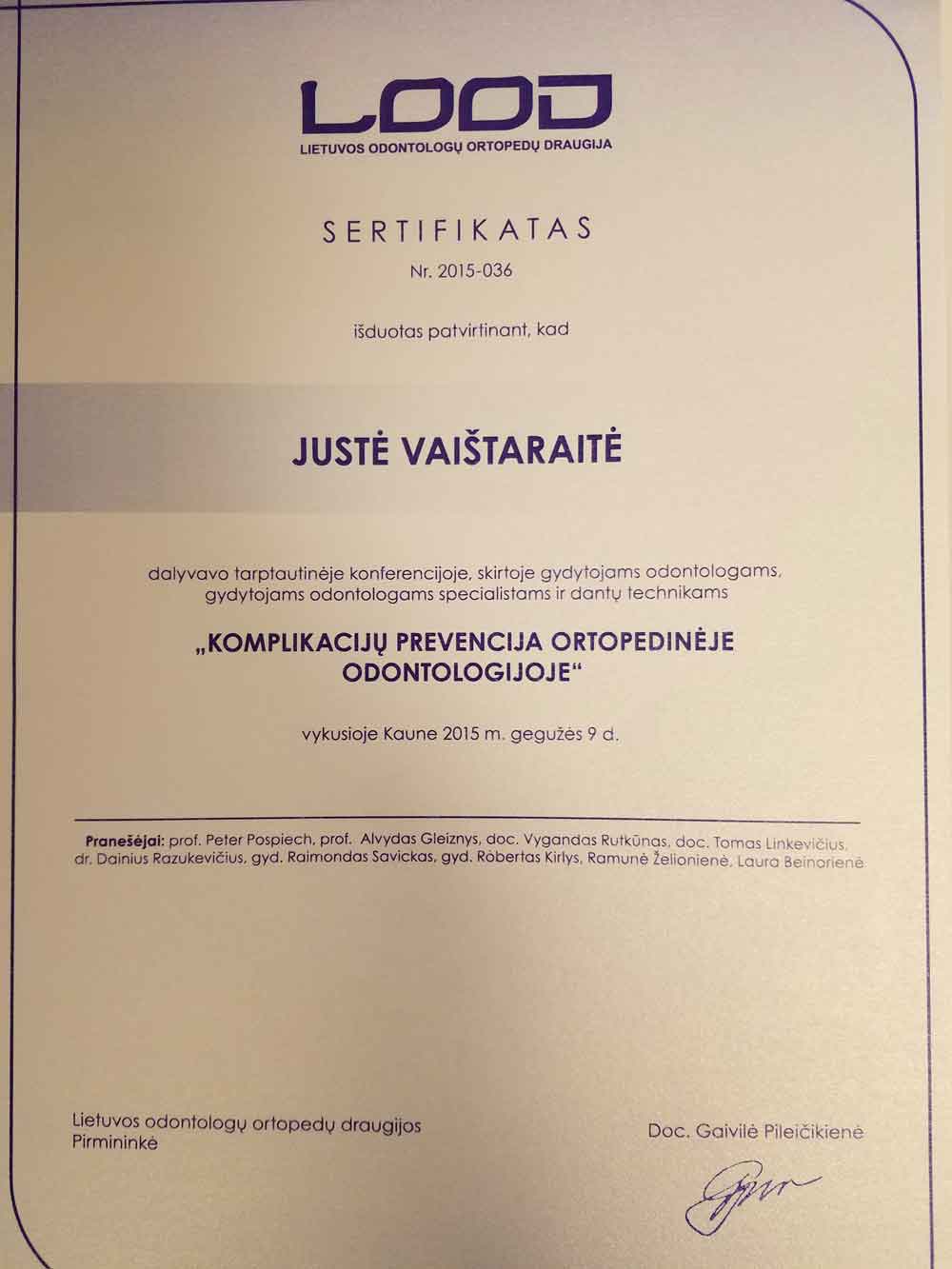 - 2015 05 09 „Komplikacijų prevencija ortopedinėje odontologijoje“ Kaunas, Lietuva