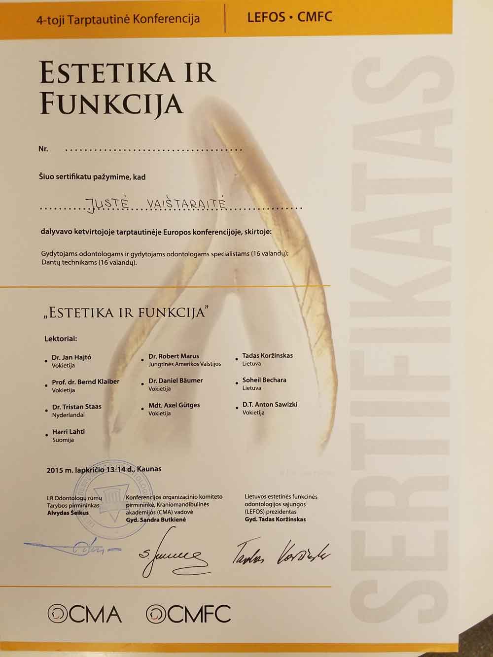 - 2015 11 13 – 14 „Estetika ir funkcija“ Kaunas, Lietuva