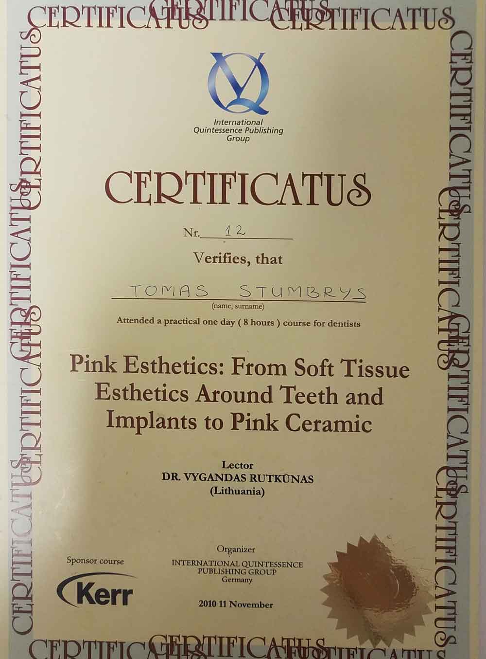 - 2010 11 12 “Pink Esthetics: From Soft Tissue Esthetics Around Teeth and Implants to Pink Ceramics” Vilnius, Lithuania