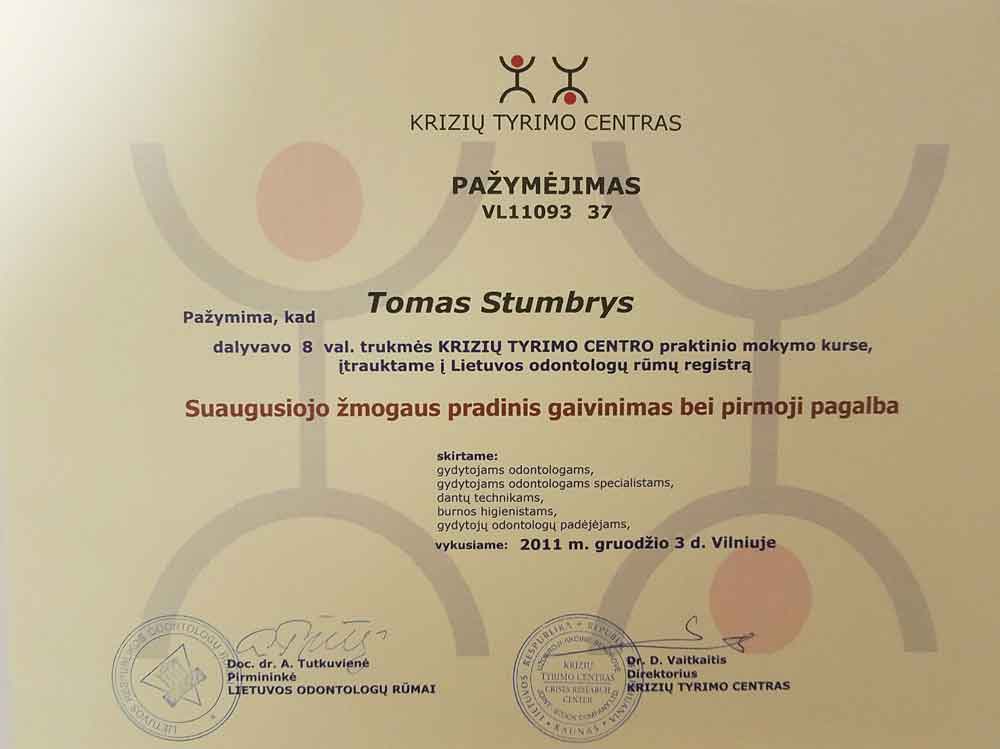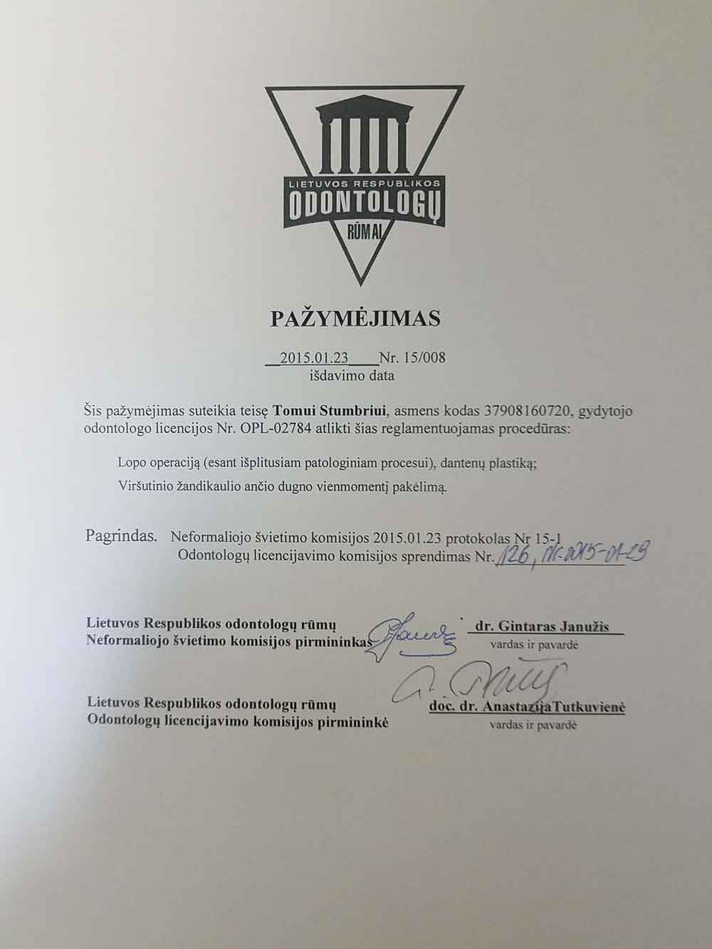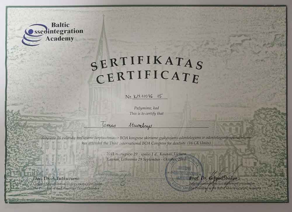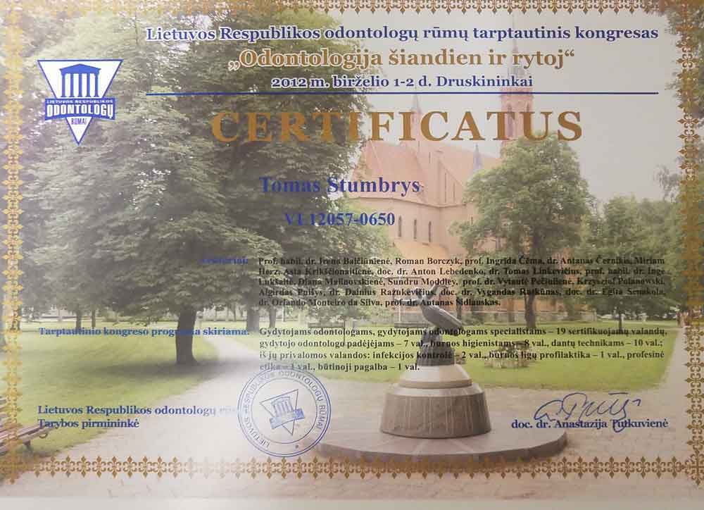 - 2012 03 17 “Implantacija viršutiniame žandikaulyje galinių dantų srityje. Sinuso pakėlimas” Vilnius Lithuania