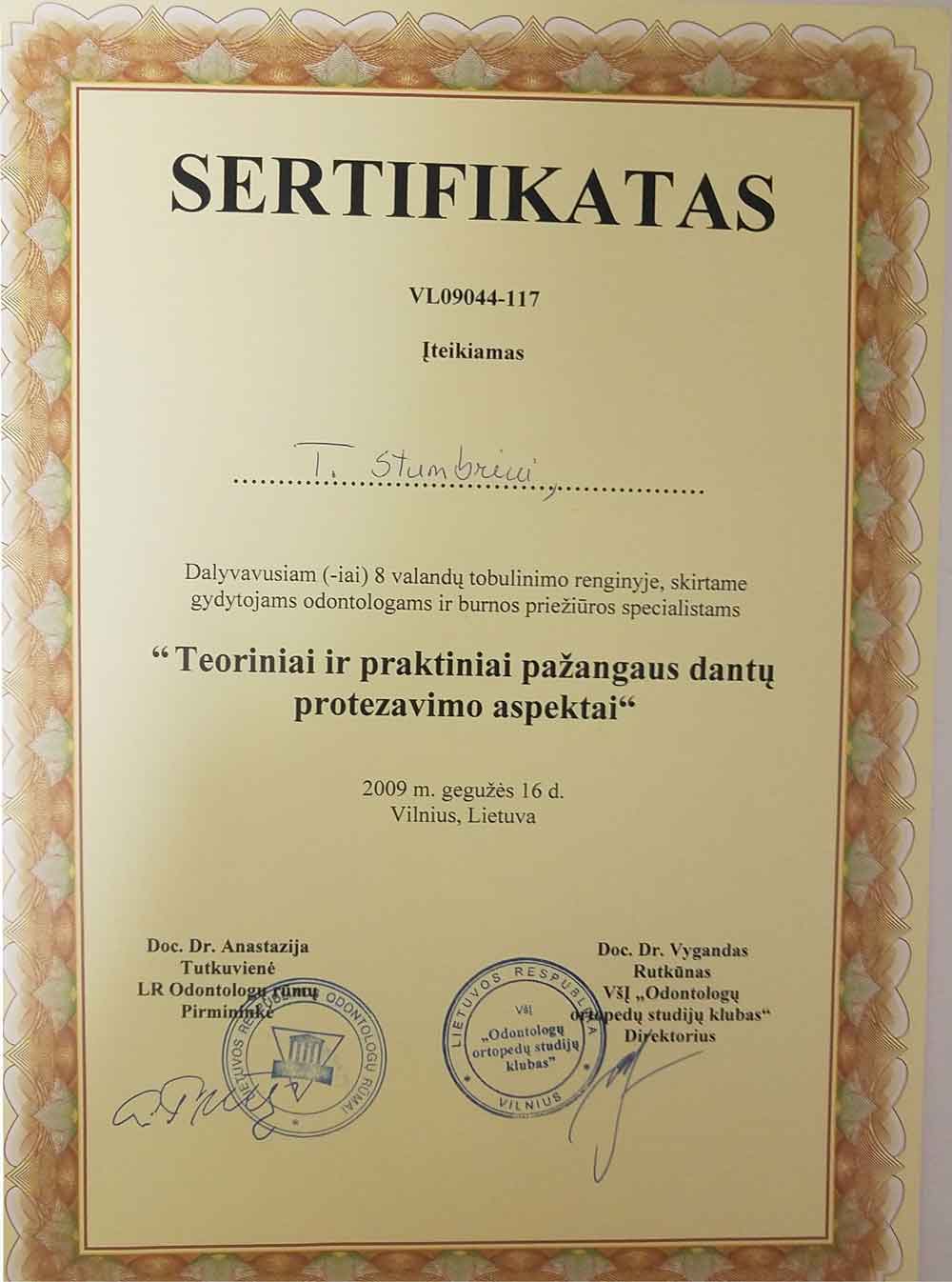 - 2009 05 16 “Teoriniai ir praktiniai pažangaus dantų protezavimo aspektai”, Vilnius, Lietuva