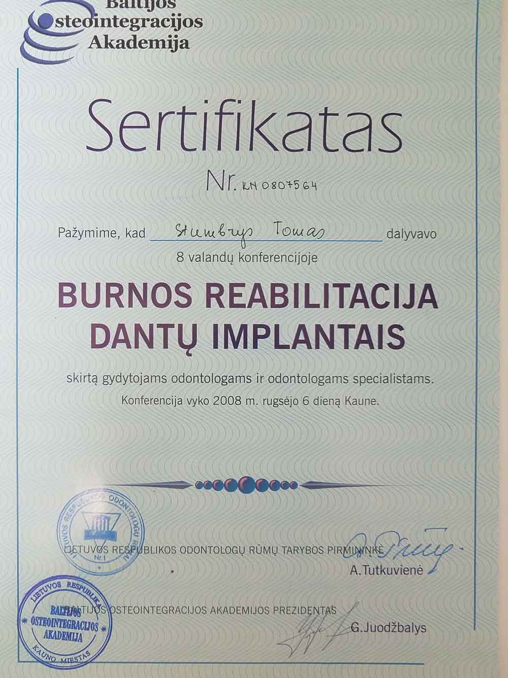 - 2008 09 06 “Burnos reabilitacija dantų implantais”, Kaunas, Lithuania