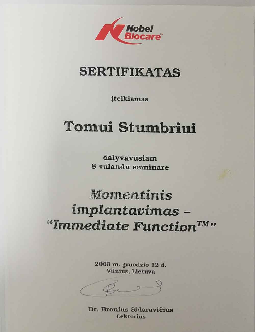 - 2008 12 12 “Momentinis implantavimas-Immediate Function”, Vilnius, Lietuva