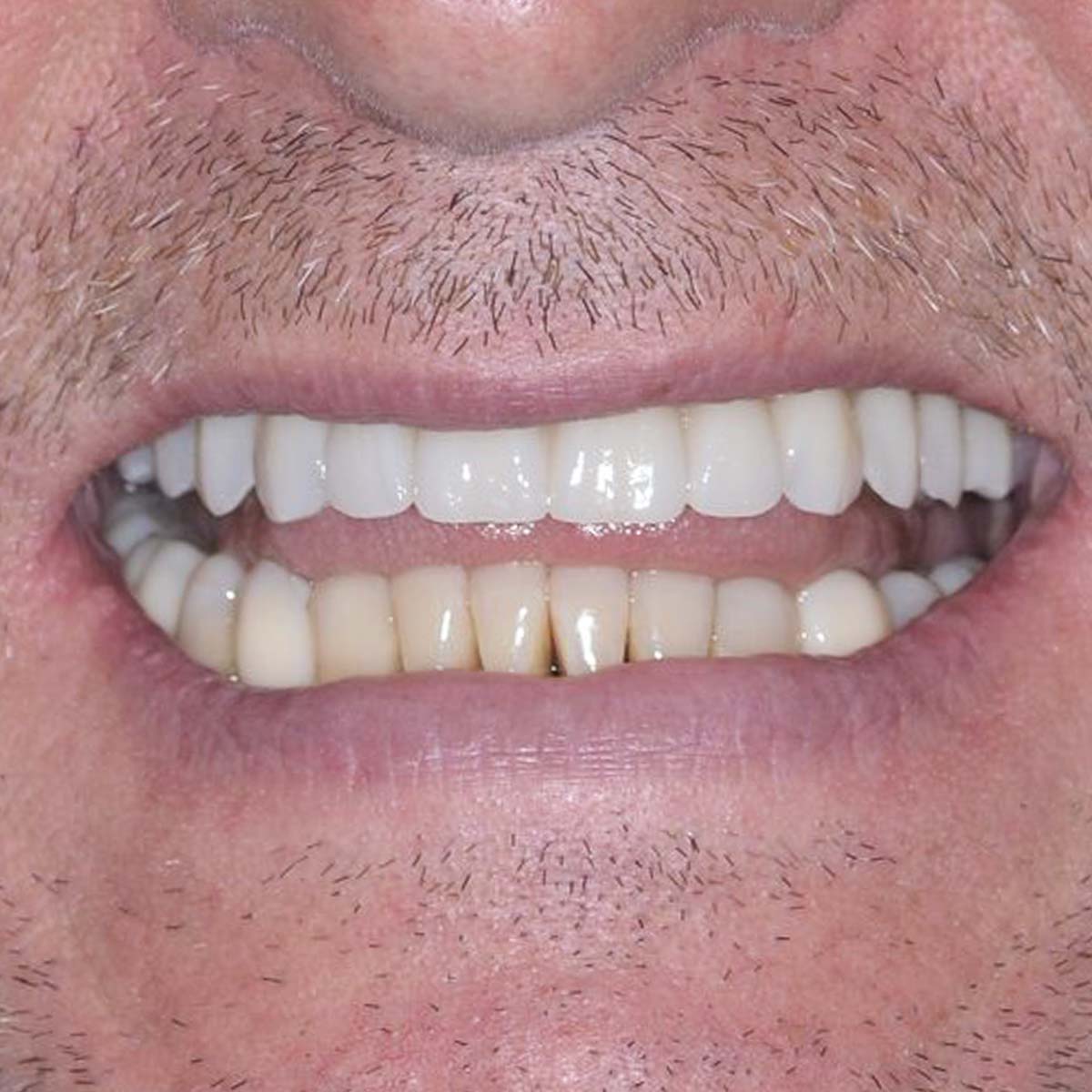 Atlikus visus reikiamus darbus, viršutinis žandikaulis sužibo tvarkinga dantų eile. Vyras, matydamas rezultatus, pasižadėjo sau, kad daugiau skirs laiko sveikatos ir burnos higienos priežiūrai. Kad ir koks svarbus jam darbas, kitoms gyvenimo sritims taip pat reikia dėmesio.